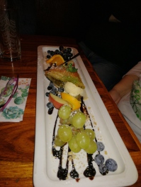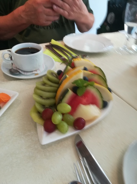 Zur Belohnung gab es noch einen Gruß aus der Küche. 2 Tolle Eisplatten und Kuchen und verschiedenes Obst ließen wir uns gut schmecken. Danke dafür.