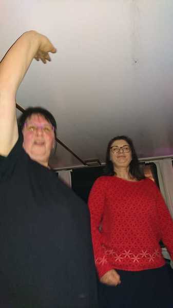 Die Stufen waren Monika und Silla zu anstrengend ,also nahmen Sie den Lift.