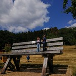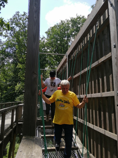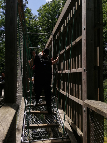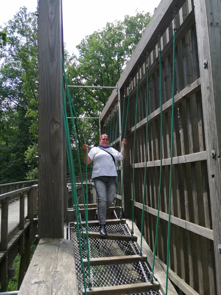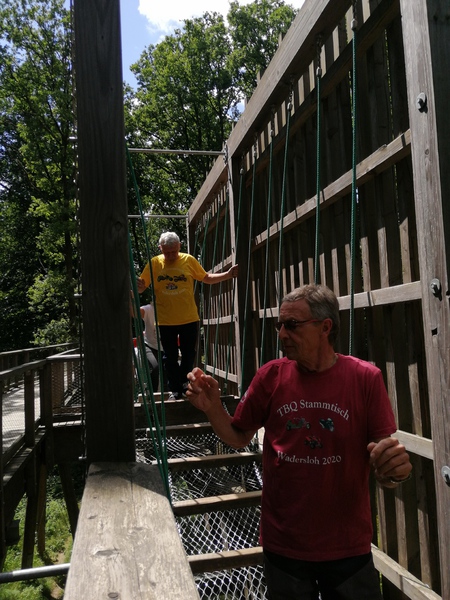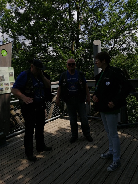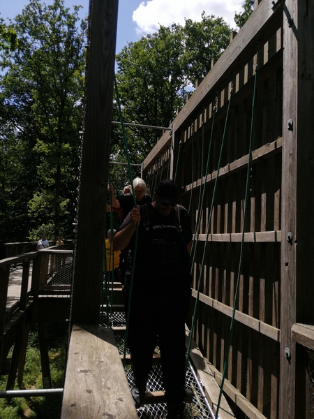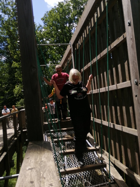 Oben angekommen bot sich uns ein total genialer Ausblick. Über wackilige Brücken ging es dann wieder langsam in Richtung festen Boden.Quer durch den Wald an Lichtgestalten und an einer Sitzgruppe aus Baumstämmen vorbei ging es zum Ausgang.Nach so viel Anstregung hatten wir uns wohl etwas zu essen verdient. In dem kleinen Restaurant gab es Kuchen und Kaffe aber auch Pommes und andere Getränke die gerne von uns verzehrt wurden. Als wir uns auf den Heimweg machten war uns allen klar das war ein schöner Tag . Zum krönenden Abschluß fuhren wir noch kurz zu ,,Onkel Willi ,,................ Dann freuen wir uns schon auf´s nächste Mal......