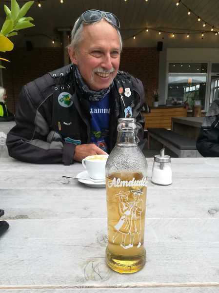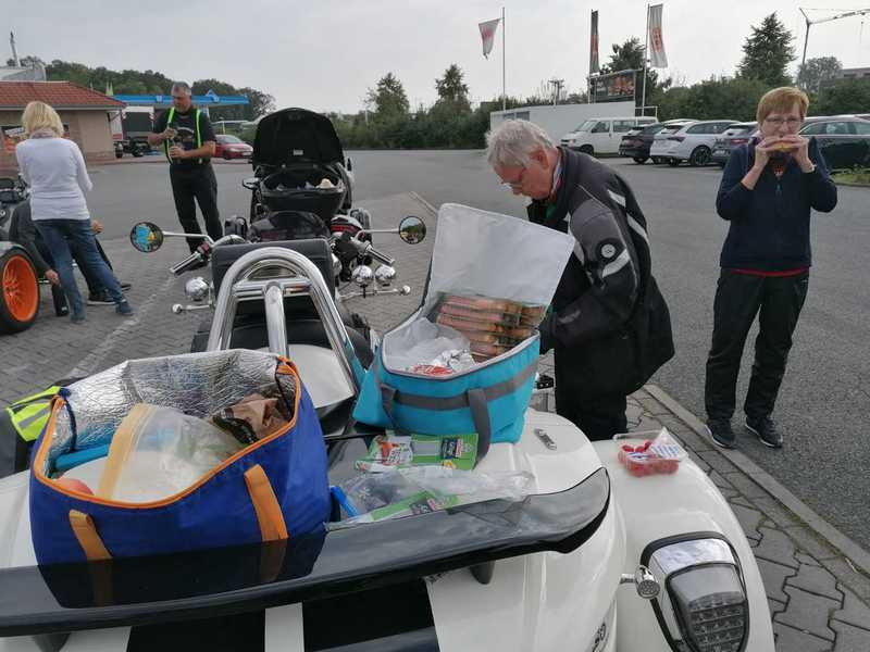 Nach 1 und ´ner halben Stunde fahren wir zu Gabi und Helmut um uns das neue Trike der beiden anzusehen und um uns bei Kaffee und Kuchen und ´nem Gläschen Alkoholfreiem Sekt aufzuwärmen.