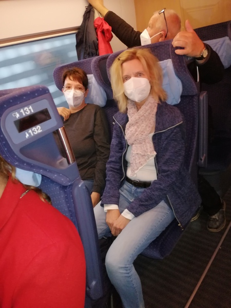 Wir haben geplant mit FLIXTRAIN zu reisen.....Es war dann aber so ,das der Zug ohne uns gefahren ist. Es gab 3minuten vor Abfahrt eine Gleisänderung die mit 20 Personen und Gepäck nicht zu schaffen war. Die Durchsage war unverständlich und 2Gleise weiter zu sprinten war nicht machbar. Nach einigen Telefonaten und Diskussionen haben wir uns dann dazu entschlossen mit unseren Autos zu fahren. Schnell wurden Fahrgemeinschaften gebildet und ab ging es. Dank neuester Technik,NAVI, kamen wir gut in Berlin an.