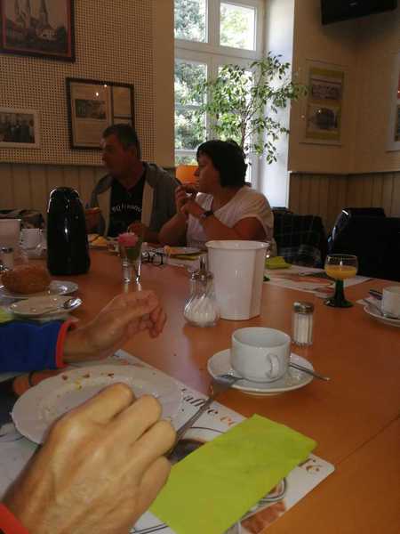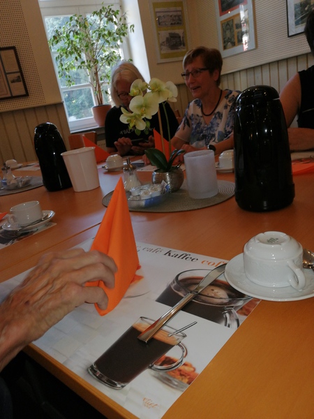 Von der Haltestell aus ging es mit knapp einer Std verspätung ,natürlich haben wir vorher Bescheid gegeben,dann in,,Das kleine Cafe" was leider nicht ausgeschildert war und ein Stückchen entfernt lag.